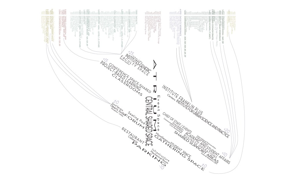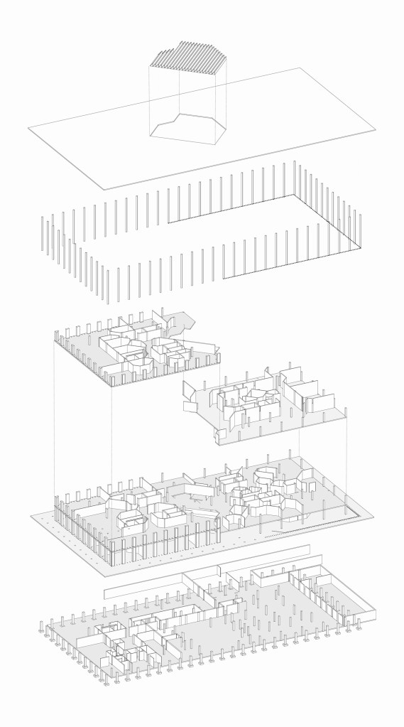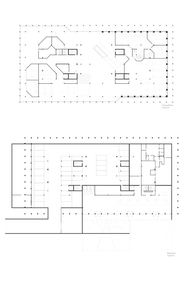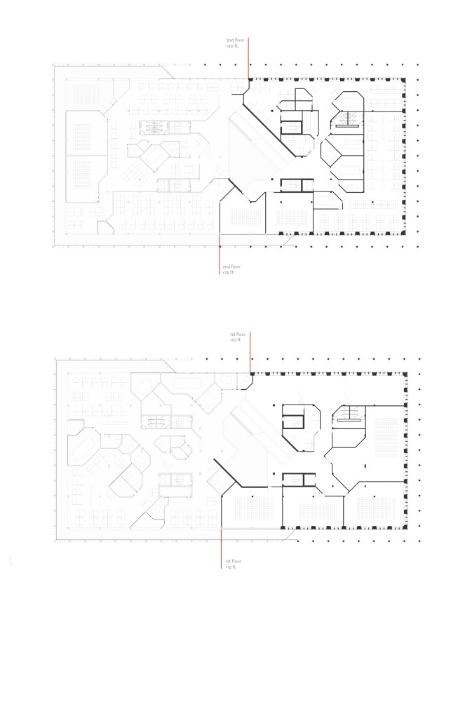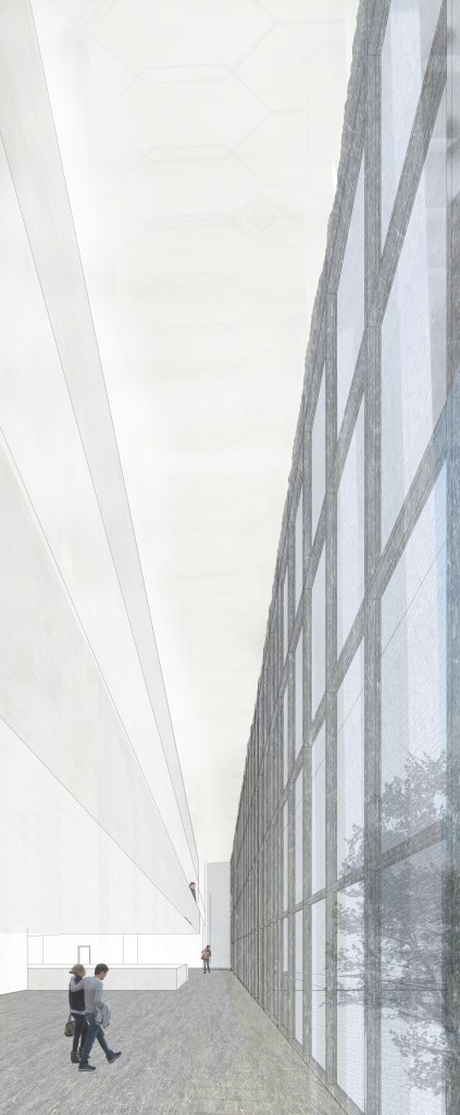 With the specification of the program the university had planned and the way we had decided to place the programs, the concept of cell into cell emerged. We took inspiration from the building’s current hieroglyphs on the façade and created these geometries along this grid which began as smaller cells closer to the building’s center morphed into large cells on the exterior to best use the natural light. The learning spaces, administrative offices, and the institutes each become their own cell and then are divided up into smaller cells within these floor plates.