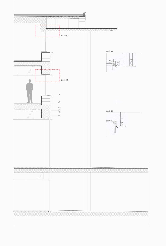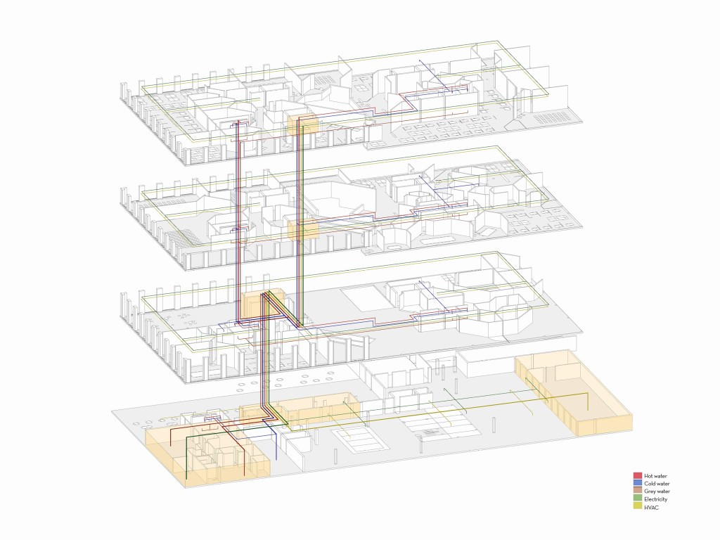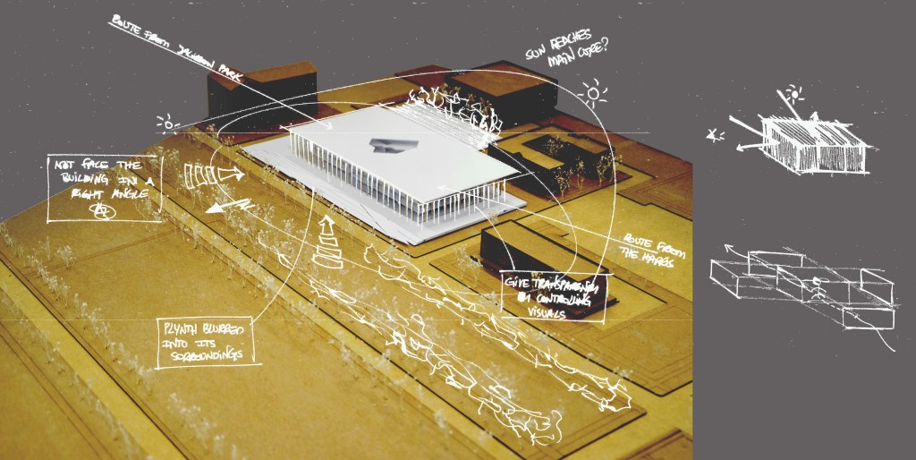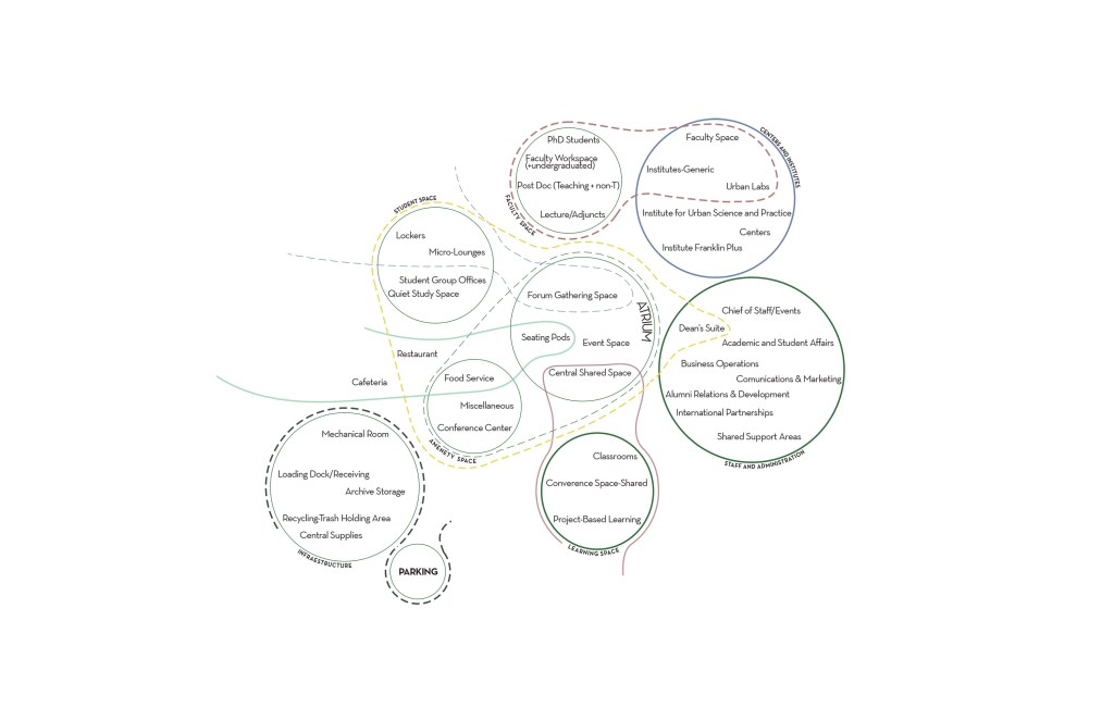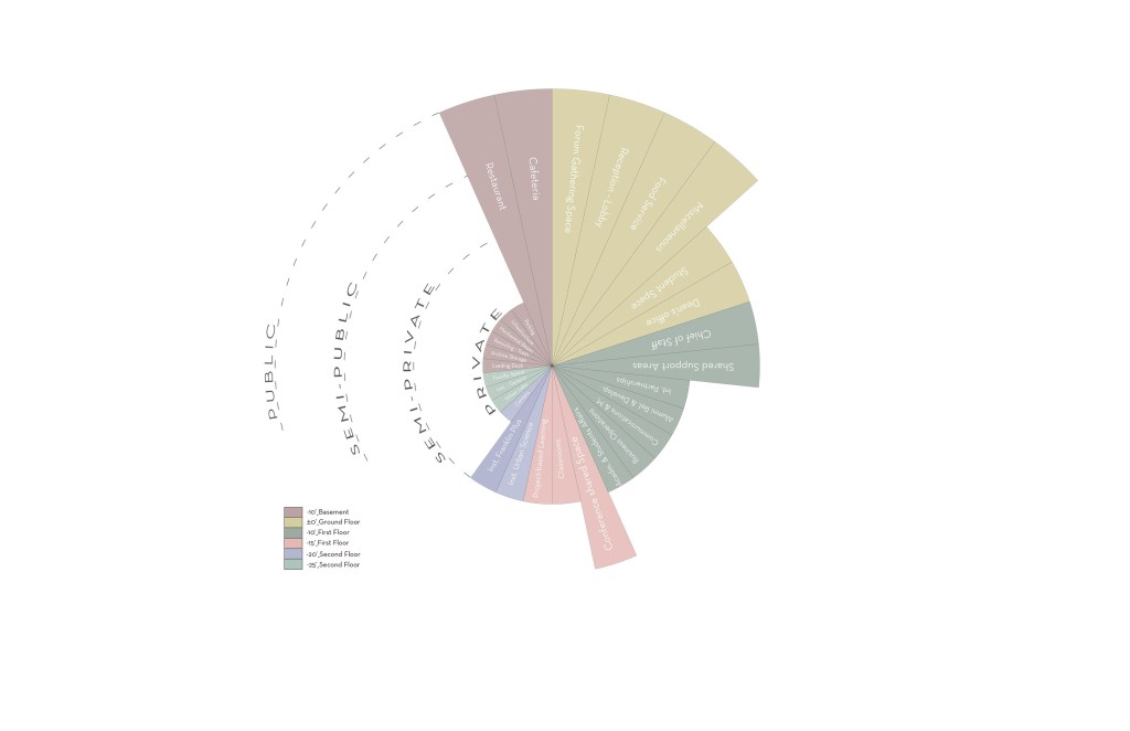 With the specification of the program the university had planned and the way we had decided to place the programs, the concept of cell into cell emerged. We took inspiration from the building’s current hieroglyphs on the façade and created these geometries along this grid which began as smaller cells closer to the building’s center morphed into large cells on the exterior to best use the natural light. The learning spaces, administrative offices, and the institutes each become their own cell and then are divided up into smaller cells within these floor plates.