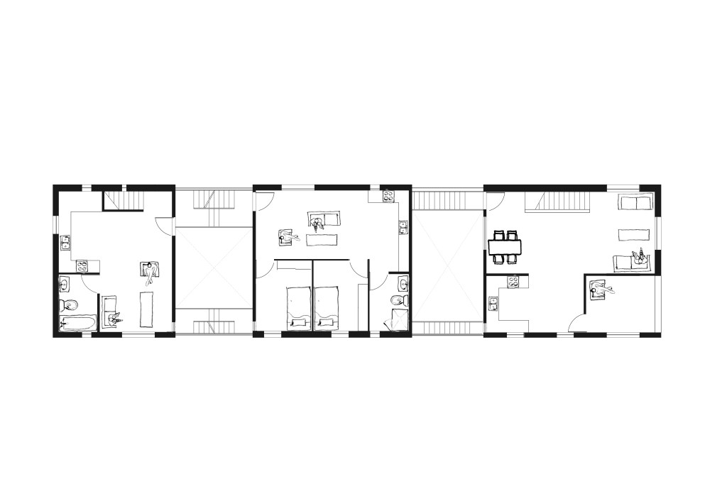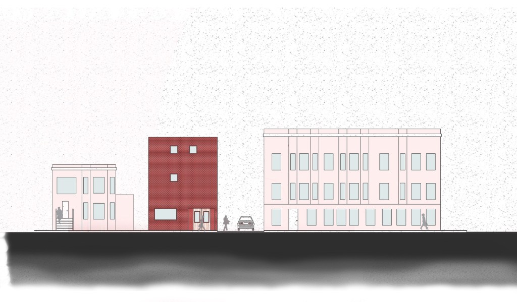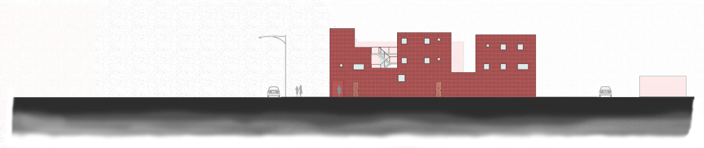 The project began as a multi-use building with four units on the upper levels and a bookstore and cafe on the ground floor set in Chicago’s Logan Square neighborhood. The interaction of the people in the units drove the design of the building to direct how the inhabitants might interact within their small community in relation to time and the space they were occupying. Communal space was too much, however separate entrances were too little. A common entry began to form on the North side of the building which residents would interact as they moved through the building to and from their homes which took on the form of modular pieces which shifted to direct these interactions. The goal of creating a gradient of privacy levels as the residents traveled through the building from the most communal to the most isolated. The shifts began to break the floor plates compressing the space of the bookstore below. Creating separation between the units allowed a greater sense of privacy and allowed the compression in the bookstore below to release and gain natural light and pulling people all the way inside the store to the cafe counter and to the lounge. Pulling the units apart provided an opportunity to adjust the apertures in the walls with the intent of maintaining privacy within the units while also reminding residents of their neighbors much like a short garden fence.