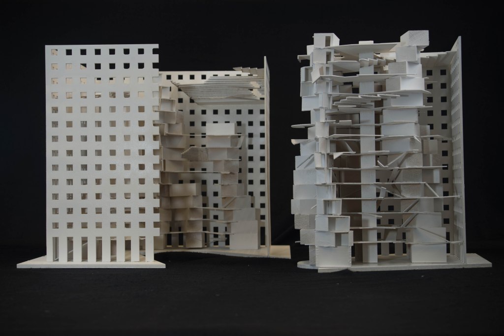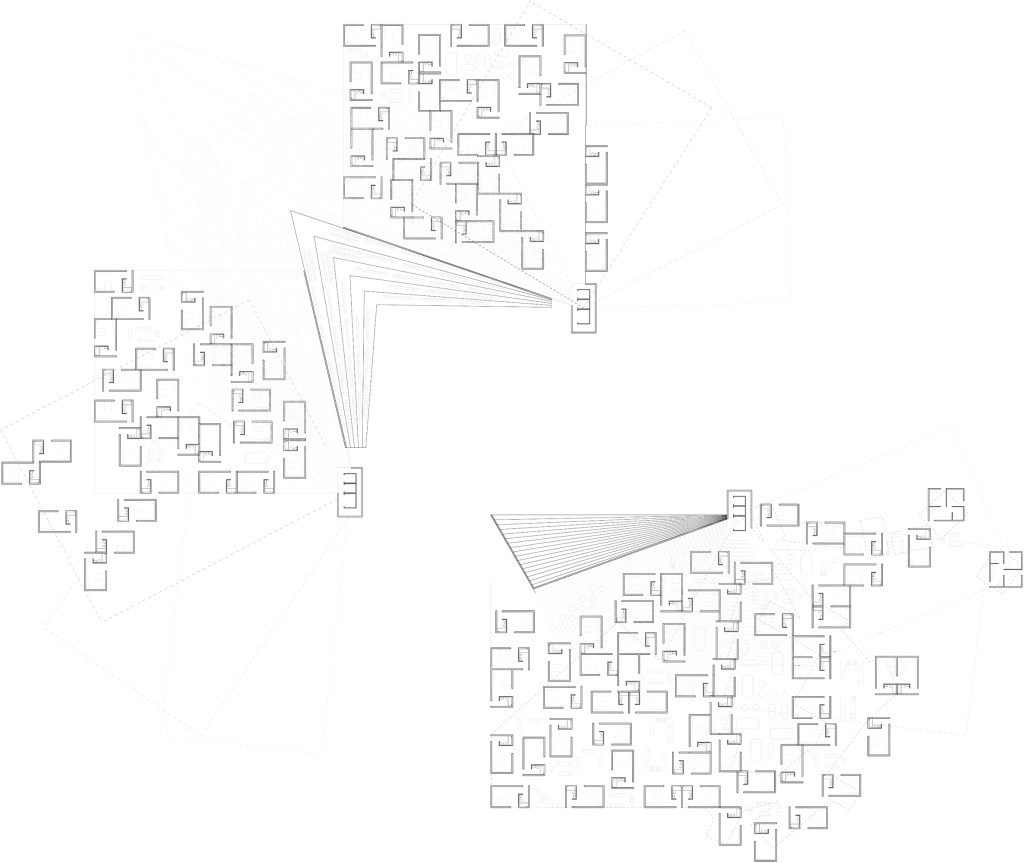 The plates of the towers take on various urban conditions becoming open communal areas both on the interior to bring the city together and on the exterior as terraces and circulation. The area that has the maximum accessibility generates a theatre type, while as market or central hub emerges where plates from different towers come together along a bridge. The large plates form smaller communities within the city and blend from one to another through the communal terraces.
